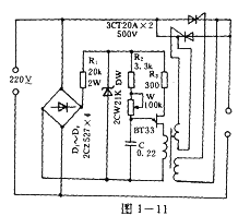 圖1一11所示的交流調壓器電路采用單結管弛張振蕩電路觸發