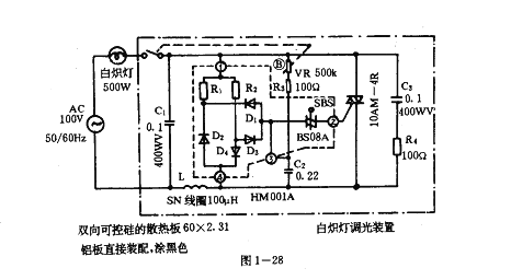 圖1--28所示的調光器,使用HM001A模塊控制(虛線框內是HM 001A模塊內部電