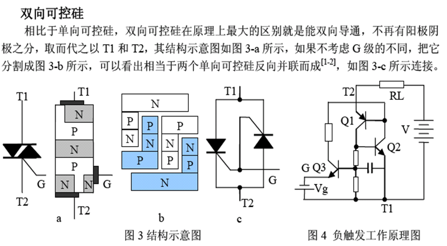 相當于兩個單向可控硅的反向并聯,但只有一個控制極G極。