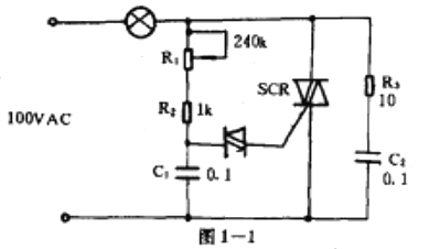 圖1—1所示,由SCR雙向可控硅、R1,R2,C1,和觸發(fā)二極管就構成了一個簡單的可控硅調(diào)光電路。當調(diào)節(jié)R1時即改變了C1充電的快慢,從而改變SCR的可控硅導通角,達到調(diào)光的目的。圖中R3,C2是消除高頻干擾的諧波吸收電路。本電路有個最顯著的缺點——滯后現(xiàn)象。即當R1減小時,燈并不是逐漸亮起來,而是當調(diào)至某一點后,燈突然急劇變亮。以上內(nèi)容由東莞市環(huán)昕微實業(yè)有限公司提供。